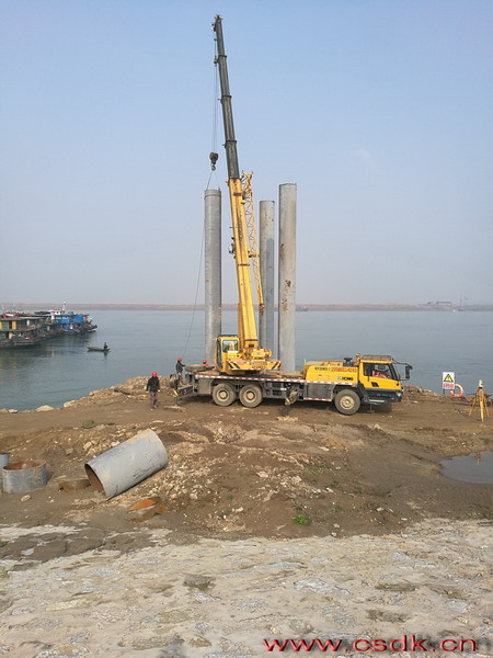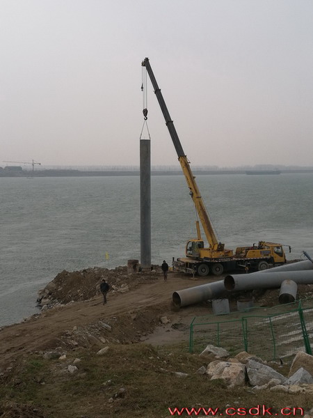 開(kāi)始樹(shù)第一根樁管,25噸的吊車都不顯大